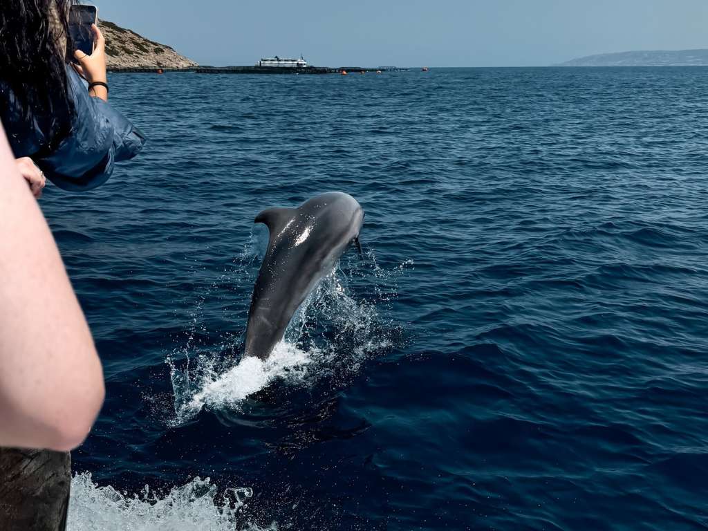 Begin your journey with a cruise to Makri Islet, where you may encounter wild bottlenose dolphins swimming near the boat. During this time, your guide will share valuable information about dolphin behavior, aquaculture, and the local marine ecosystem.