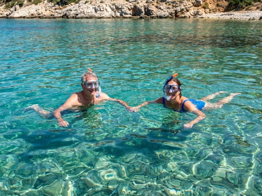 Your first stop is St. George’s Bay, a hidden natural paradise only accessible by sea. Here, you will have approximately 1.5 hours to swim in turquoise waters, snorkel with provided equipment, or simply relax onboard while enjoying the stunning surroundings.
