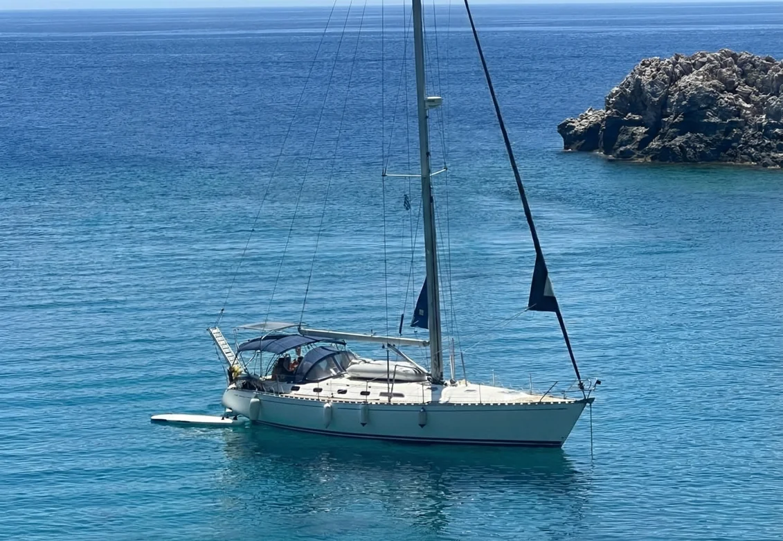 Experience Rhodes from the sea on a private day sailing cruise designed for relaxation, swimming, and authentic Mediterranean hospitality. Step aboard the beautiful 14-meter sailing yacht Dufour 45 Classic “Slalom” and set sail from Rhodes New Marina for a memorable journey along the island’s spectacular east coast.