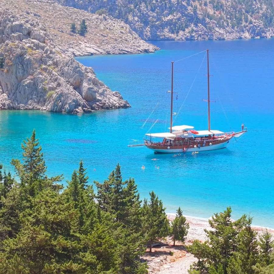 Explore the stunning coastline of Symi on a full-day cruise aboard the traditional boat Poseidon. Swim in crystal-clear bays, visit hidden coves and sea caves, and enjoy a freshly prepared BBQ lunch on the island of Seskli during this relaxing day at sea.